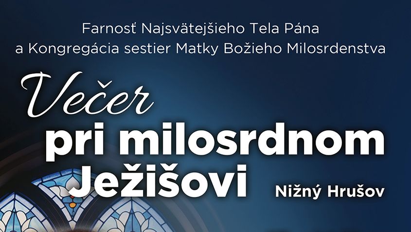 Februárový Večer pri milosrdnom Ježišovi sa uskutoční v piatok 20. februára. Stretnutie sa začína modlitbou v Hodine milosrdenstva vo farskom kostole Najsvätejšieho Tela Pána, pokračuje adoráciou, príhovorom sr. M. Blanky Krajčíkovej z miestnej komunity a svätou omšou o 18.00. Po sv. omši si budete môcť uctiť relikvie apoštolov Milosrdenstva – sv. sestry Faustíny a sv. Jána Pavla II.